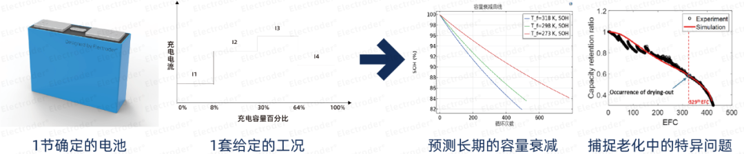 根據(jù)易來(lái)科得的電芯壽命回溯解決方案,先要通過(guò)老化機(jī)理實(shí)驗(yàn)診斷影響電芯壽命的關(guān)鍵因素,再進(jìn)一步通過(guò)仿真驅(qū)動(dòng)設(shè)計(jì)大幅提升電芯壽命。