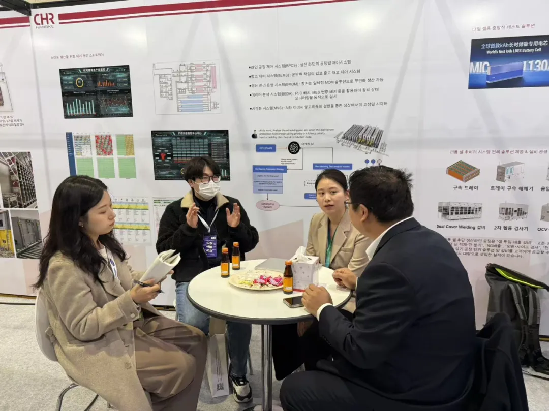 相比2024年首次亮相韓國電池展,今年杭可科技的展臺面積有所擴大。寬敞、明亮的展位設計獨具匠心,以簡約而富有科技感的風格,全方位展示杭可科技的品牌形象與產品魅力。展位布局合理,分為產品展示區、商務洽談區,為參觀者提供了舒適、便捷的交流環境,充分彰顯了杭可科技作為行業領頭企業的實力與自信。