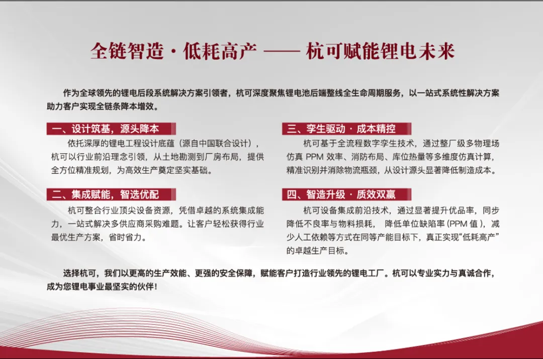 杭可科技六工廠展廳,是窗口,更是橋梁。它連接著杭可 40 年的技術沉淀與客戶的實際需求,也連接著當下的生產痛點與未來的產業機遇。