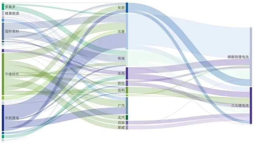 當然從電池供應商來看,寧德時代覆蓋了所有的新勢力;中航進了零跑和小鵬,蜂巢能源進了零跑和哪吒。