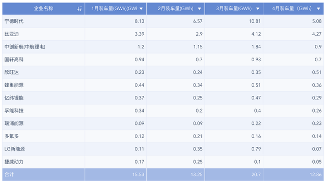 【文/朱玉龍】4月動力電池從安裝量來看,只有34家動力電池企業了,排名前3家、前5家、前10家動力電池企業動力電池裝車量分別為10.2GWh、11.5GWh和12.7GWh,占總裝車量比分別為77.2%、86.4%和96.0%。從目前來看,基本10名開外如果沒有特殊的扶持,很難有大的發展。下述談談供應關系和下一步的發展。