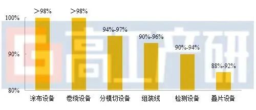 2021年中國主要鋰電設備國產化率(%)