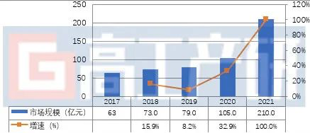 2017-2021年中國鋰電池中段設備市場規模分析(單位:億元,%)