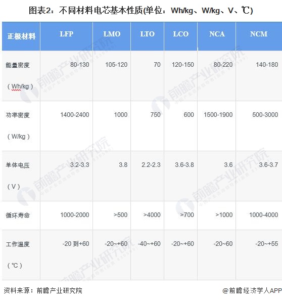 動力電池模組是指動力電池單體經(jīng)由串并聯(lián)方式組合并加保護(hù)線路板及外殼后,能夠直接提供電能的組合體,是組成動力電池系統(tǒng)的次級結(jié)構(gòu)之一。動力電池單體即電芯,按正極材料來分,主要包括鈷酸鋰、錳酸鋰、磷酸鐵鋰以及鎳鈷錳酸鋰三元材料等。不同材料電芯基本性質(zhì)如下表所示: