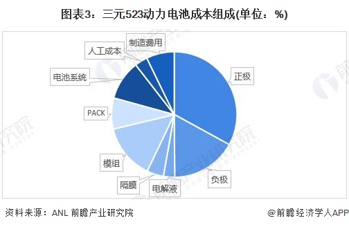 根據(jù)ANL機構(gòu)發(fā)布的數(shù)據(jù)顯示,目前市面上新能源汽車的動力電池供應(yīng)主要為三元523和磷酸鐵鋰電池兩種,其市場占有率超過99%,其中三元523動力電池中動力電池PACK工藝的成本費用占到總電池費用成本的8.02%。