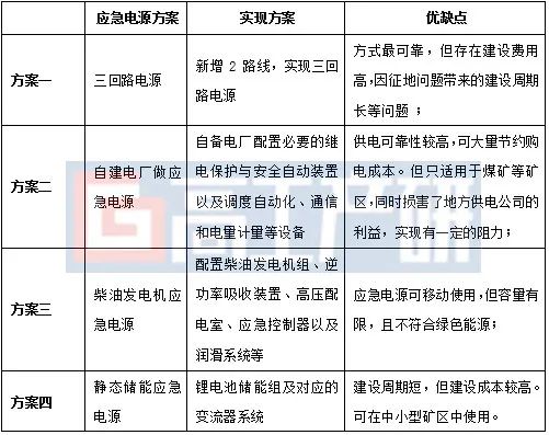 礦區應急電源的選型要依據礦區的實際情況,從安全性、經濟性、實用性、可靠性等多各方面考慮,確保備用電源真正起到作用。目前國內礦區使用的備用電源類型主要包括引入第三電源、自備電廠、靜態儲能、車載柴油發電機四種形式。