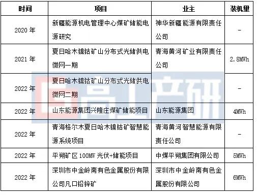 初步統計,除去大型電站的共享儲能外,2021年以來約有20個礦區采用儲能鋰電池作為備電系統,合計約85MWh,平均1個礦區采用1-2個集裝箱式儲能,容量范圍在2-3MWh。