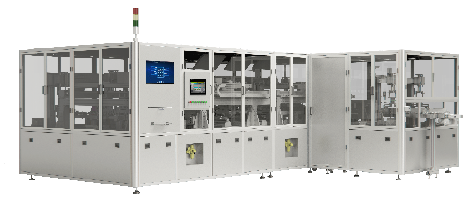 用于實現方形鋁殼鋰電池的表面清潔、重量測量、尺寸測量、外觀檢測、貼碼及貼標檢測、NG篩選等功能,且將生產數據本地存儲及上傳 MES 系統,為全自動連線設備。