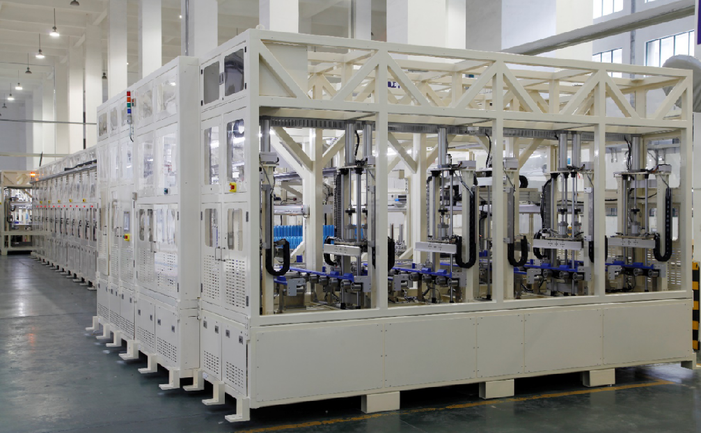 軟包動力電池化成分容一體機主要用于軟包裝鋰離子電池的熱壓化成及分容過程。在加熱加壓狀態下進行電池化成,壓力采用可調的控制,優化化成效果,縮減電池制作周期;化成結束后,機械手直接搬運電池到分容治具,分容治具采用恒溫控制,溫度一致性達到±2 ℃,解決了電池在分容過程中散熱不均的問題。分容采用加壓、恒溫充放電模式,提高分容的效率,減少電池搬運次數,提高電池生產的合格率,提升電池品質。